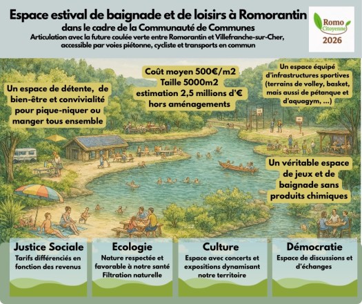 En 2020, RomoCitoyenne proposait la création d’un espace naturel de baignade et de loisirs, sur le modèle de Mont-Près-Chambord.